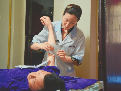 成兴凤最近一次创业,是北川安昌镇的一间膏药铺。膏药铺理疗室里有三张小床,她给顾客贴膏药,做理疗。有顾客上门,她问清情况后,就让顾客躺到床上,熟练地按摩、上药。生意好的时候,还有点忙不过来。