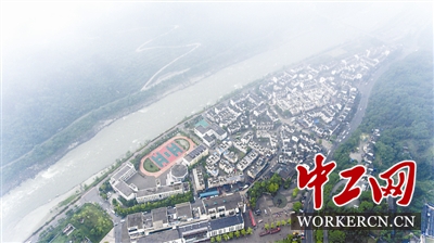 重建后的映秀镇。(无人机拍摄)