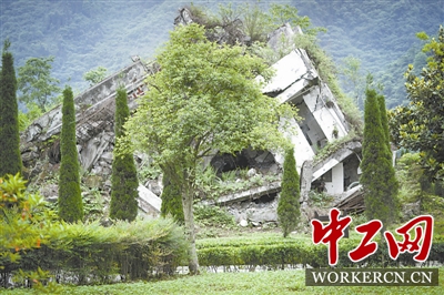 漩口中学的这座废墟是在震后一年被原样保留下来并对公众开放的。几年间,每天都有游客到这里参观,可对于张红梅来说这里却是她最不愿意去的地方,这里埋有她的老师和同学。