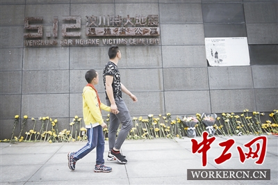 5月12日,不少人来到映秀镇漩口中学遗址进行祭奠,在成都航院学习的唐婷婷因为学校实习没能如愿回来,但她仍通过网络祭奠的方式向在地震中失去的亲人和同学寄托哀思。