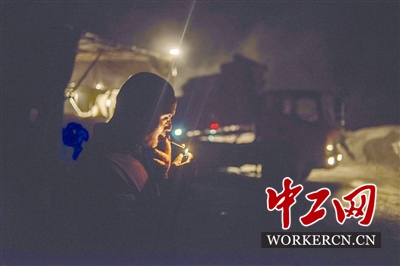 5月7日晚上,贺云根借着卸货的空隙点了一根烟。这几年,家里主要靠他跑运输养家。