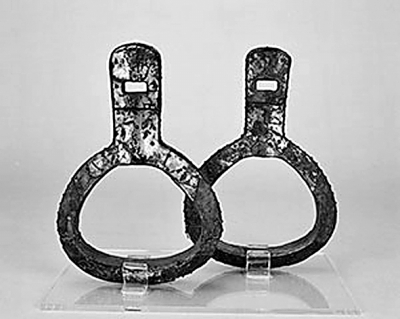 铜鎏金木芯马镫(辽宁省博物馆藏)。