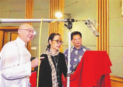 ■(左起)乔榛、奚美娟、钱程在配音现场 严峻 供图