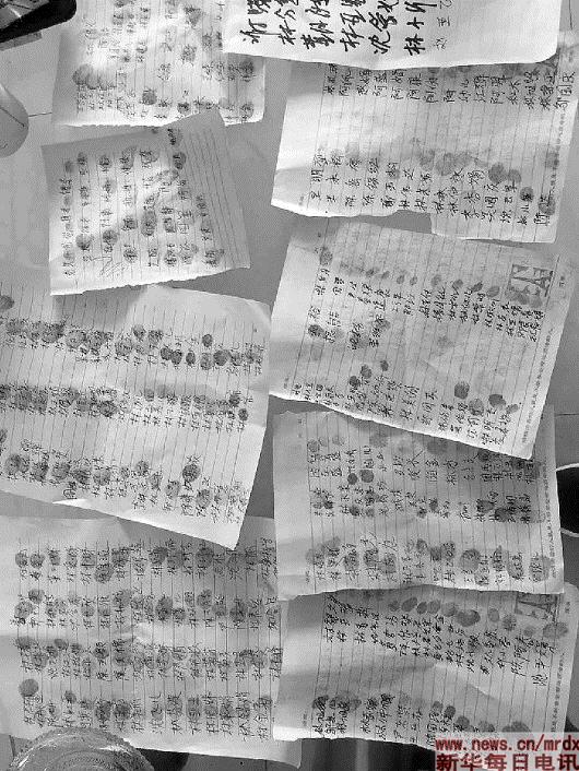 700名村民联名按下手印,希望不要将周平调离。新华社发