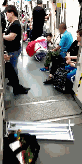 天津地铁三号线列车内一名男乘客在车厢内剥蒜,不时有蒜皮被吹落到车厢地上。身着校服的女孩蹲下身子默默把蒜皮都收在了自己手中。