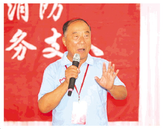 王梅平在消防志愿者例会上发言。