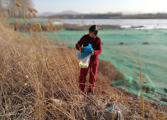 凌晨5点,贺玉凤已经拿上白手套、塑料袋,麻溜儿地出门捡垃圾去了。她边骑车边捡垃圾,哼着小曲儿,绕着妫河岸捡上一圈儿,至少要两个小时。早晚各一次,四季不停。