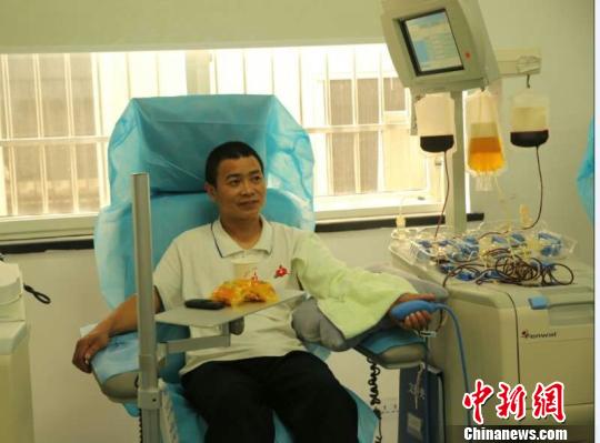 今年46岁的伍庆文,自2004年以来,已无偿捐献血小板137次 毛严庆 摄