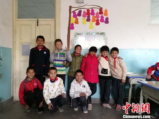 刘春韦和喀什贝西小学四年级1班的学生们。 勉征 摄