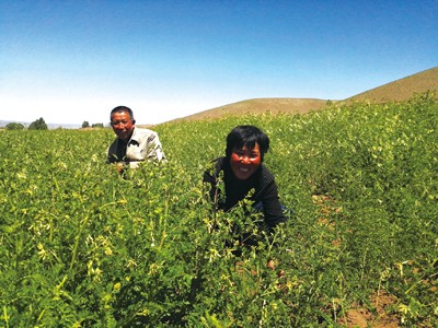 冀玉珍和丈夫尹占元在自家黄芩地里