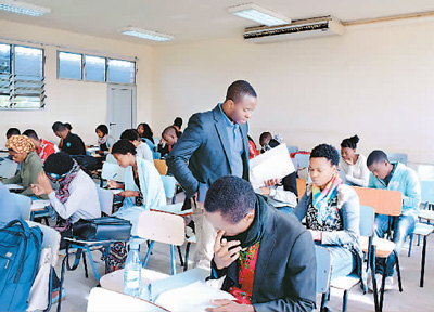 在莫桑比克马普托,莫桑比克第一位本土汉语教师赛尔在蒙德拉内大学为汉语专业学生们授课。