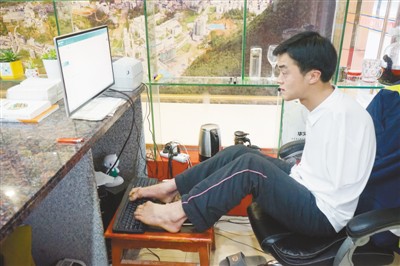电脑前,十根脚趾熟练地敲击着键盘;屏幕上,一瓶苞谷酒迅速成交。