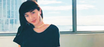 马聪将中国传统双面苏绣呈现在耳环上,耳环与佩戴者浑然成为一体。 (美国《世界日报》陈小宁摄)