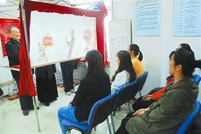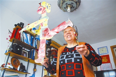 杨月华一直有个心愿,希望有年轻人跟她学习皮影制作。她说:“皮影是我国的非物质文化遗产,一定要将老祖宗留给我们的文化瑰宝传承下去。”为了这个愿望,现在的杨月华,经常奔走于学校和社区,义务为大家演出,讲皮影。孩子们都亲切地叫她“皮影奶奶”。(王雷 摄影报道)