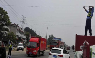 警察先扶老人过公路,才走几步,红灯就闪烁起来,