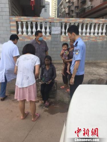 民警陈远鹏冒着浓烟冲上二楼,接过消防员手中被浓烟熏黑的老人,迅速把老人抱到楼外面远离火源的空地,老人渐渐恢复了部分神智。