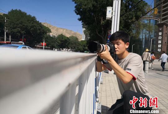 “85后”小伙牛少伟走遍兰州百余地标及城乡街道,历经1500多天,拍摄20万张照片,“延时”记录兰州城市变迁。图为牛少伟用镜头记录街上的人和事。 魏建军 摄