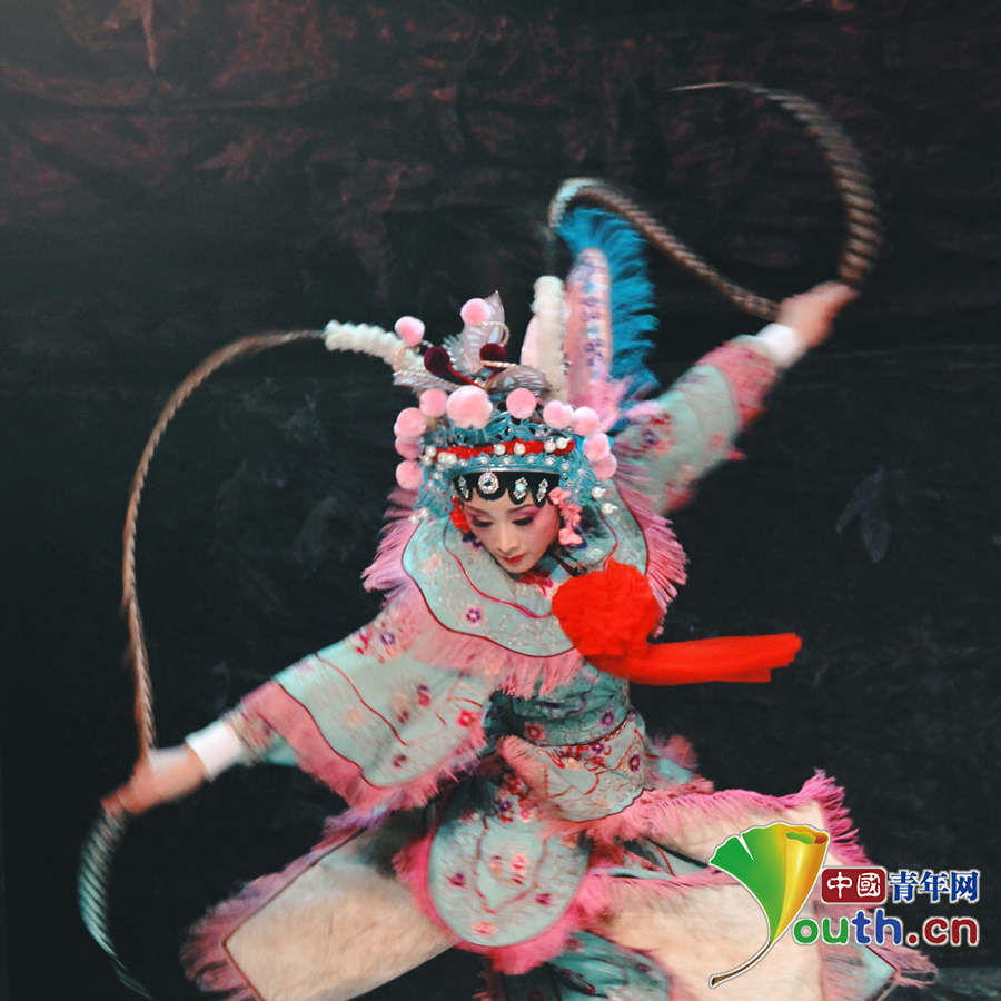 “特别是武戏,得练硬功夫,我目前练过长水袖、甩发、扎大靠、长绸等等。”