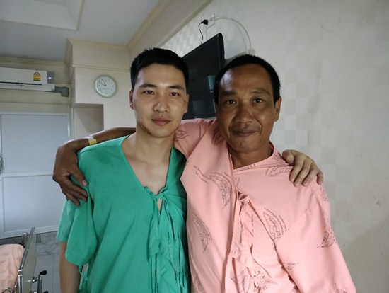 张皓峰与被他救起的泰国随船工程师。(受访者提供)