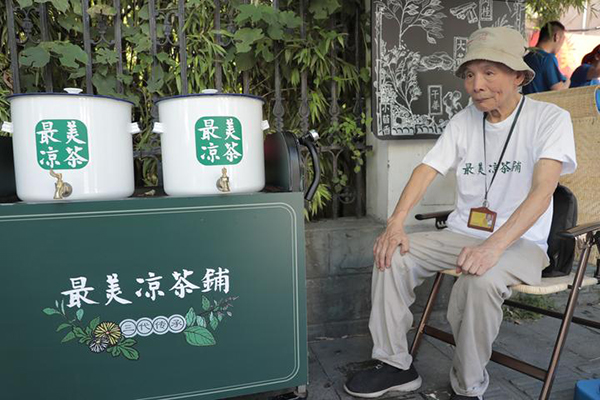 今年,是顾忠根老人推着凉茶来到巷口的第41个年头。这个传承了三代的凉茶摊,每年这个时候都会出现在这里,从上午10点左右开始,到下午3点半收摊回家,为街上来往的行人送去清凉。