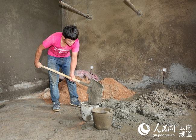 最近一个月,为补贴家用,他和父母在离家四、五公里外的箐口塘打工,为一户人家新建的房屋做装修。每天一大早骑摩托车赶去,10多分钟就能到达。