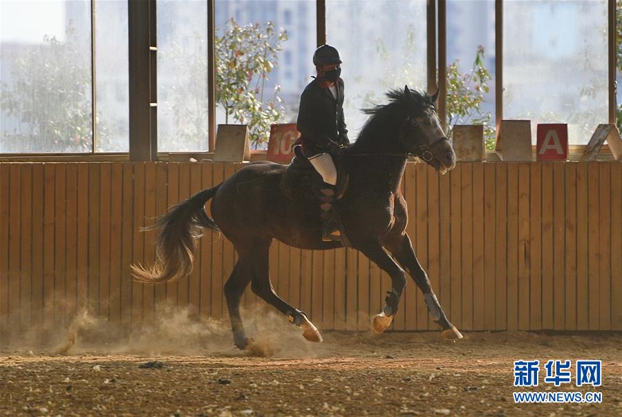 在江西省抚州市宜黄县阳光马术学校,学员巴特尔在训练(3月13日摄)。新华社记者 周密 摄