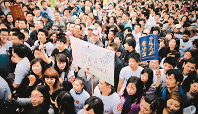 图为巴黎华侨华人参加2016年“反暴力,要安全”游行现场。(资料图片)