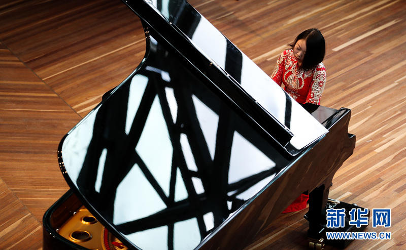 7月28日,中国选手吕佳颖在比赛展演音乐会上弹奏。 新华网记者 白雪飞 摄