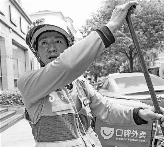 速度太快,差点让人忽略了,他只有一条右腿。来不及多客套,他又赶赴下一个送餐地点。