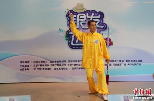 来自昌平区71岁的董大爷也是个运动达人,一套太极剑引得现场叫好声不断,让不少年轻人竖起大拇指。