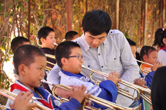 研支团成员指导学生乐团。资料图片