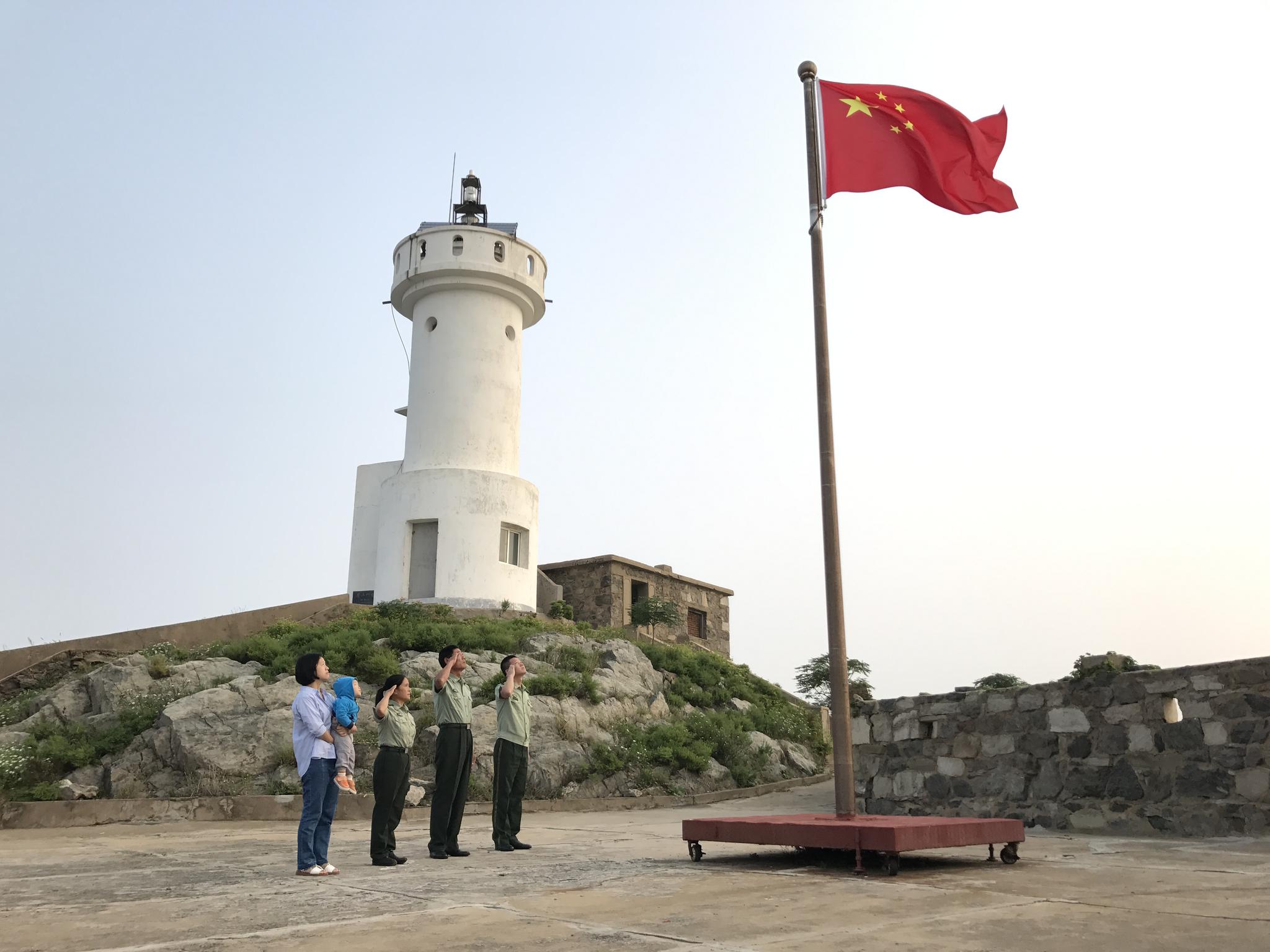 从小,王志国就随父母一起巡岛守岛,每天王志国都会和父亲母亲通电话,休假都会带着妻儿上岛和父母团聚,他对岛上的一草一木都很熟悉,他告诉我们巡岛、观天象、护航标、填写海防日志,这是父母32年来每天都要重复做的事情。升国旗更是每天第一件要做的事情,去年十一期间笔者随王志国一家代表单位前去开山岛看望慰问其父母,第二天刚蒙蒙亮,迎着喷薄欲出的朝阳,他们一家整齐的排列在海岛的小操场上升国旗、唱国歌,向祖国敬礼!当时的场景温馨而感人!