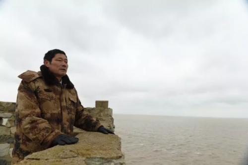 2017年2月21日,王继才在江苏开山岛上眺望远方。来源:光明日报