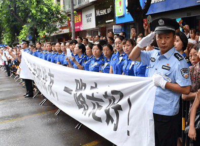 8月10日,在四川仁寿县,群众走上街头送别公安英雄。新华社发