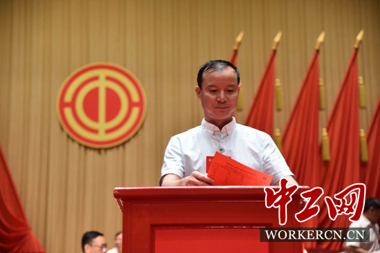 中工网讯 8月16日,贵州省总工会第十四届委员会第一次全体会议在贵阳召开。会上选举一线职工周家荣为贵州省总工会副主席。今年50岁的周家荣也成为贵州省首位当选省总工会副主席的一线职工。