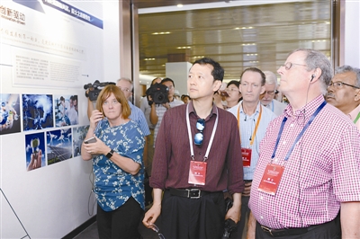 图为海外院士们在参观院士港。本报记者 杨明清 摄
