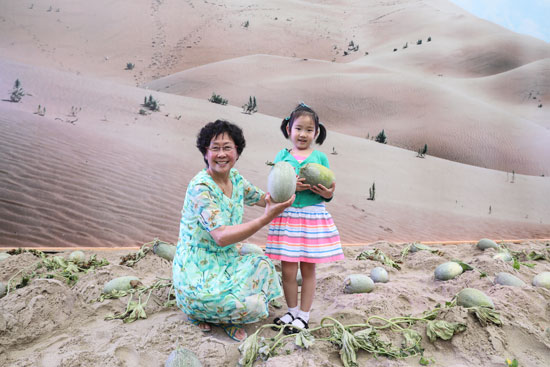 2018年7月7日,上海街头突然出现了一片“沙漠”,“沙漠”里有一片瓜地。瓜地里,蔓延着绿油油的瓜藤,一场以扶贫为主题的艺术展在繁华街头呈现。