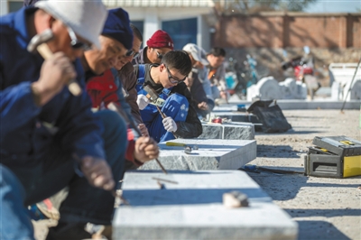 故宫养心殿研究性保护项目石作工匠选拔操作现场。故宫博物院供图