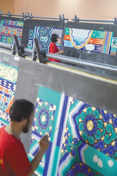 故宫养心殿研究性保护项目画作工匠在进行培训实操。故宫博物院供图