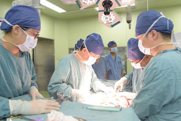 图片说明:汪希鹏主任医师、王磊副主任医师在做剖宫产手术。戴荣摄。