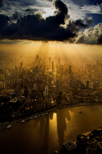 获过上海含金量极高的摄影双年展银奖的这张图,彩虹如眼眸般张望着云雾飘渺中的楼群,云中塔吊的倒影若隐若现,像极黄浦江东岸不断生长的触角……