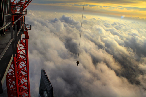 但他也错过很多转瞬即逝的奇幻镜头。塔吊司机太忙,工地上所有施工单位都抢着用,构件、设备以及给养不吊上来,工程就只能干等。