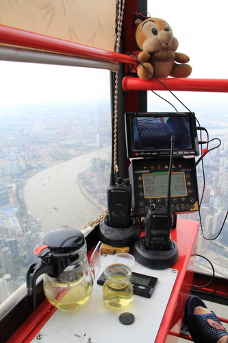 有时机位不好,他会用对讲机指挥其他兄弟将吊车转到合适位置,让钩子正好悬停东方明珠塔或是金茂大厦上方,感觉一座巨型建筑,就这么被轻轻“钓”起,好白相。