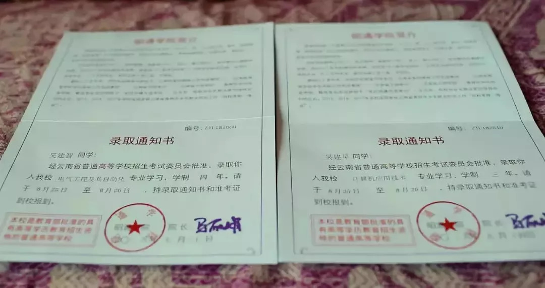 为能继续陪伴哥哥,本可以选择更好大学的弟弟,填报了和哥哥相同的志愿。最终兄弟俩一起被云南省的昭通学院录取。