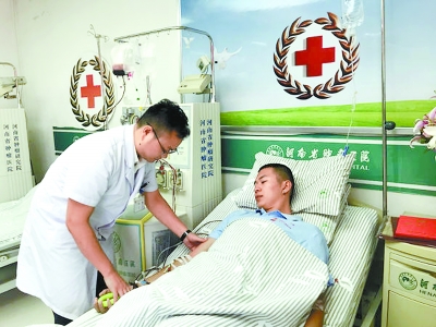 日前,记者在肿瘤医院采集室看到,这位帅气的男孩神态轻松地躺在床上,在家人和女友的陪伴下,正采集造血干细胞。