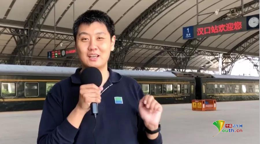 冯琰在汉口站以英文视频方式告知受众车站简况。本人供图