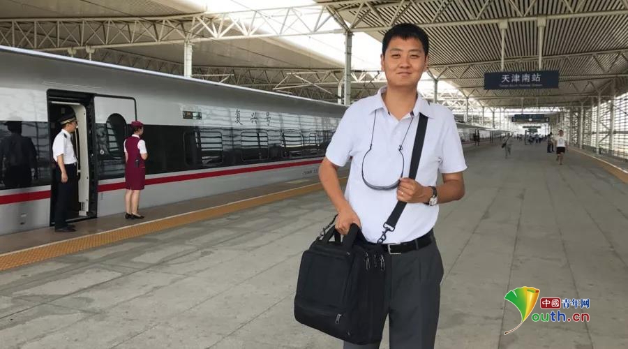 冯琰乘坐“复兴号”列车,摄于天津南站。本人供图