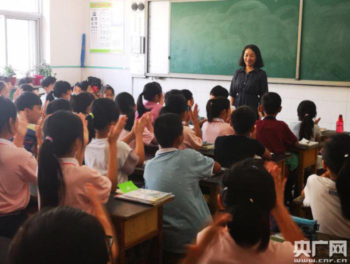 李华老师在给北京市海淀区中关村三小雄安校区五年级五班孩子们上新学期第一节语文课 央广网发 薛梅 摄