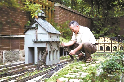 “轰隆隆······呜······”,伴随着车轮与轨道的撞击,一声汽笛悠扬响起,一列火车驶上了交错延伸的铁轨,穿过隧道、铁桥,向远方的车站驶去,车外两边的月台站牌、民居工厂、树木草地也悉数随之向后一闪而去······这不是哪列火车奔驰的真实场景,而是原华西医大英语教师张久安同儿子、朋友一起,花了5年时间,在成都温江亲手打造的“火车庭院”。随着火车模型的抵站,参观者似乎也完成了一段时光倒流的旅程。
