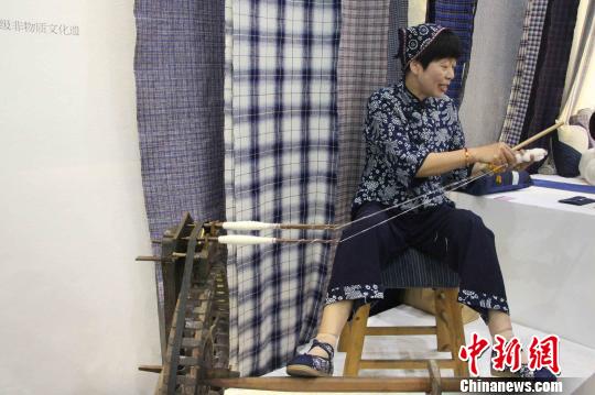 本届中国非遗博览会共有209项国家级非遗代表性项目、96位国家级代表性传承人,13项省级代表性项目、46位代表性传承人参展。图为手工艺人在现场纺线。 赵晓 摄